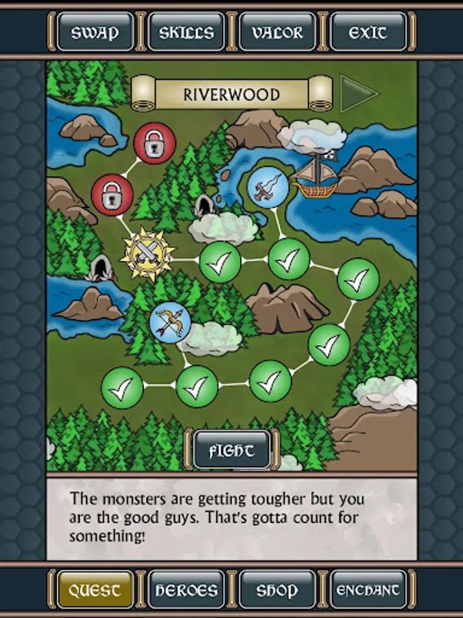 The nasty Ogre King has stolen the mystical gem of eternal power. It is up to you and the good fellows of Riverwood to restore peace to the kingdom! Take Command of the battlefield and direct four brave heroes to glory, with each victory offering the chance to uncover legendary items long forgotten and bringing you a step closer to the Ogre King's domain.