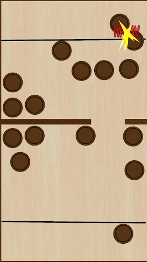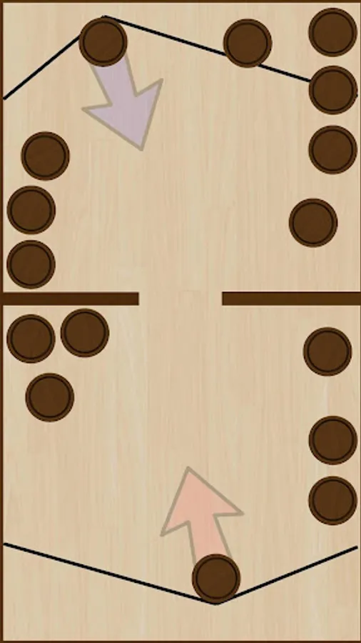 Simultaneously, both players must put all their pucks through the hatch so that they reach the adverse camp.