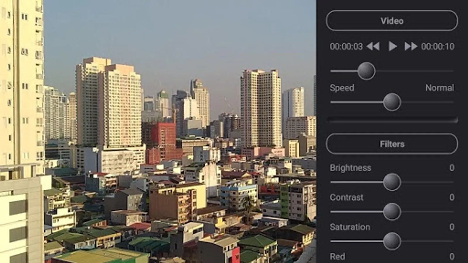 Apply sound enhancements and color filter effects when watching videos by fiddling with slider controls. Sample screenshots in the store listing shows my attempt to apply a sepia, vivid, and a gray scale filter effect to a video by adjusting only the brightness, contrast, saturation, red, green, and blue slider controls.