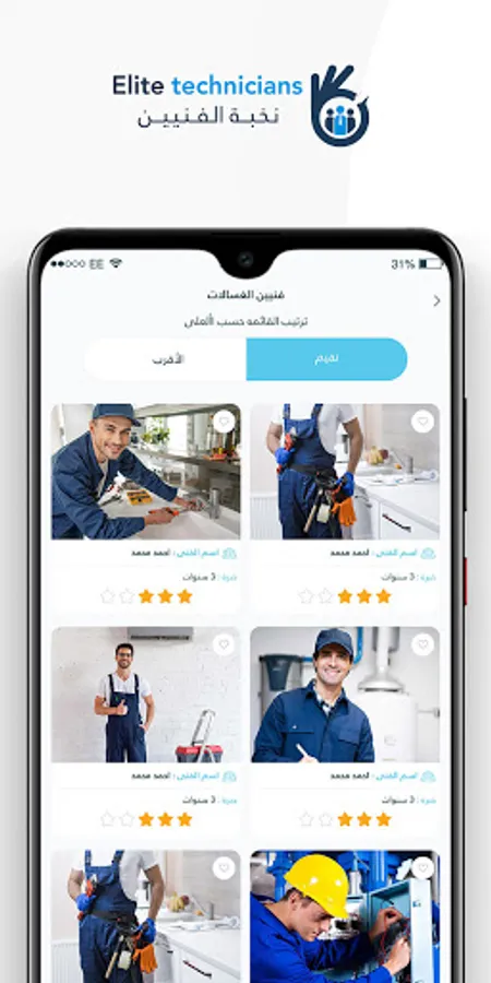 The elite technician application allows you to request maintenance and care services for your home from the best service providers in your area, to choose the most appropriate one to serve you based on an evaluation and reviews system for each service provider, an immediate reservation system, and a guarantee on services at the best prices.