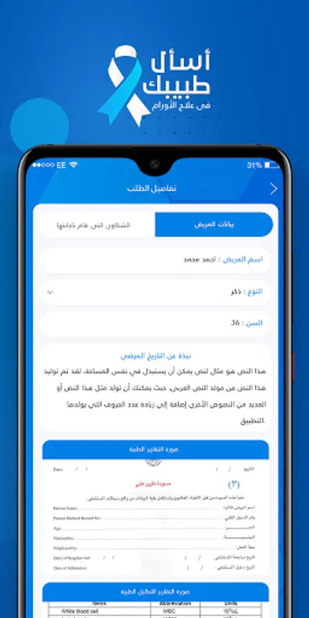 The “Ask Your Doctor” application in the treatment of oncology is the first specialized application for communication between oncology patients and their doctors in the treatment of oncology, and it is not just a video chat between the patient and the doctor, but rather an application that takes the patient’s medical history and asks him questions about the information that the doctor needs in an easy way and reformulates it to the doctor In a specialized scientific manner, sufficient time before the chat, accompanied by pictures of reports for examinations, rays, and the affected parts of the body arranged well so that the doctor takes a comprehensive idea of the situation before the chat to achieve the highest benefit for the patient
