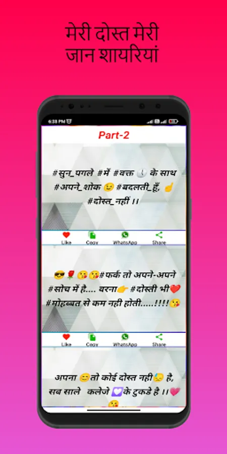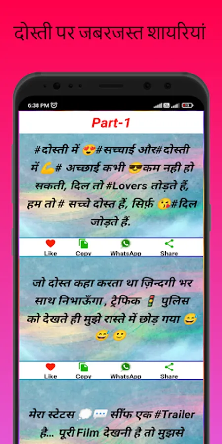 This Dosti and friendship Shayari app is a amazing and great Shayari application having lot of Shayari messages for you with offline to use.also categories as well dosti, veer shayari, hindi friendship shayari,