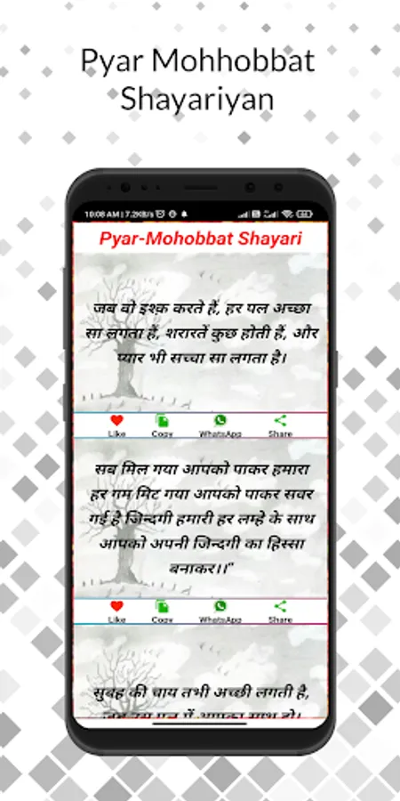 This app is the right place for Specially रोमांटिक शायरी on every Best in class categories like Romance ,Miss you Shayari, Pyar Shayari, Mohabbat Shayari, Propose Shayari etc.