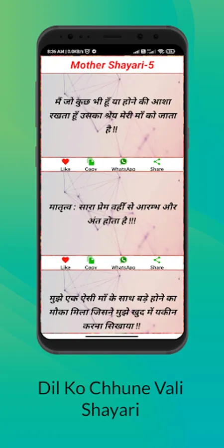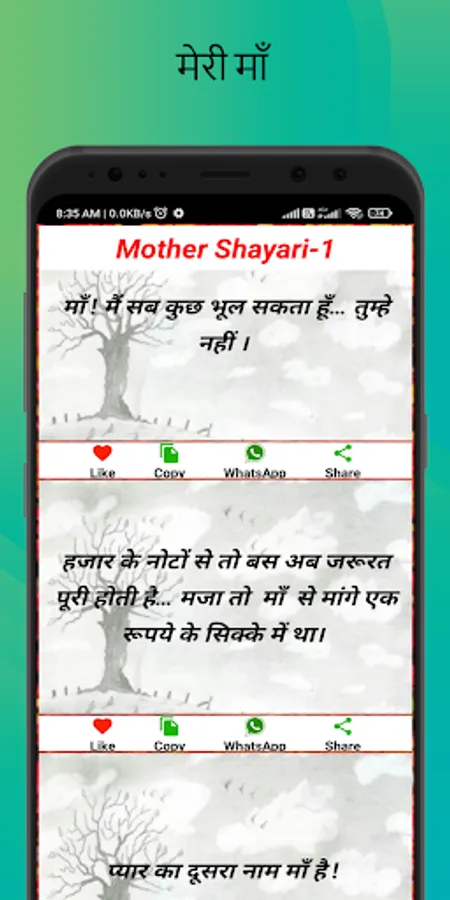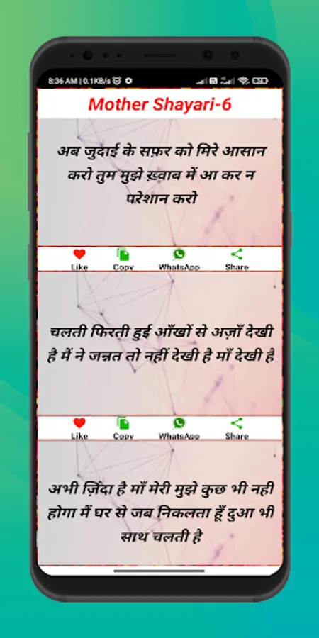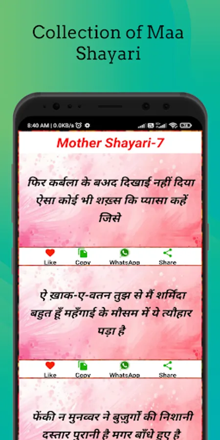 Latest Mother Shayari App with Nice and Attractive design. you can use this app online or offline. weekly new माँ स्टेटस updated.mother shayari urdu