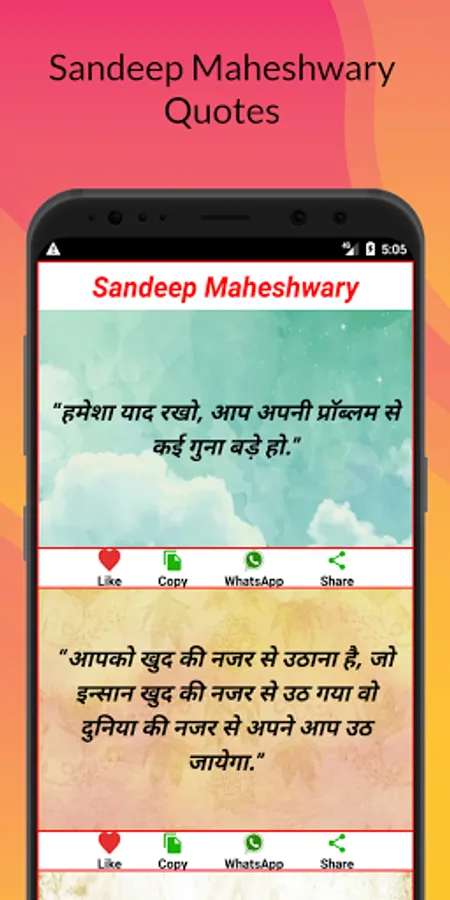 Motivational Quotes in Hindi - Quotes Adda this app’s purpose is to motivate and inspire you to be the very best you can be, to be a better you. Through the Motivational Quotes - we are able to share some of the world's best motivational quotes, hand-selected and grouped together in categories around your needs.