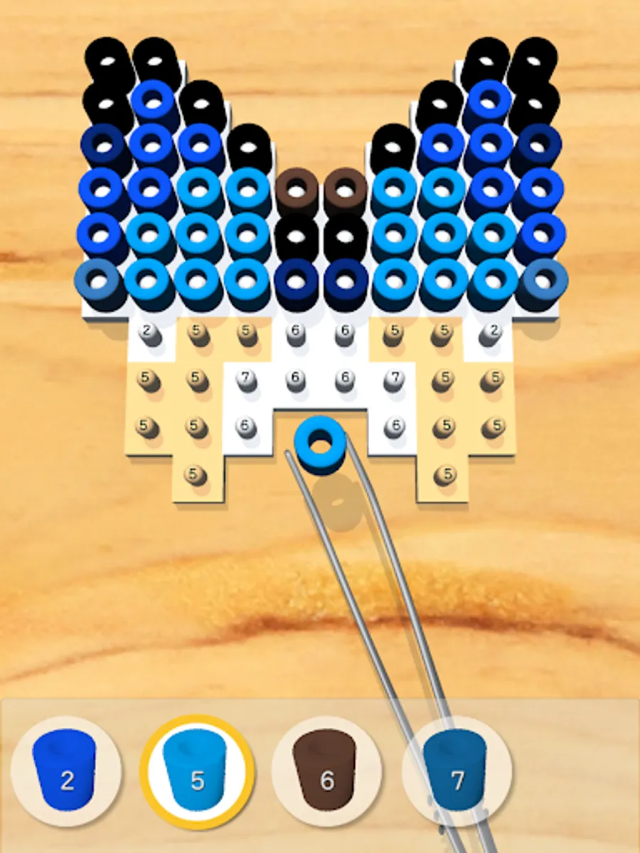 Sharpen your mind with a "Bead Art" brain training bead coloring puzzle game.