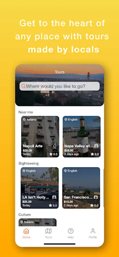 If you are a guide or an experience creator, use the app to create unique content and publish it on our marketplace, accessible directly from within the app.