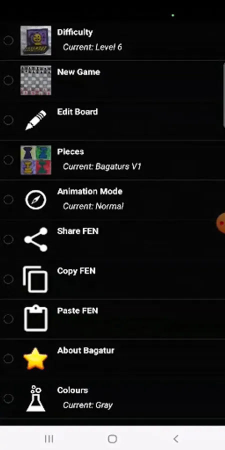 6. It is recommended to check all settings in the menu and make sure you play with the option you like most (e.g. move animation speed, chess pieces set, colors).