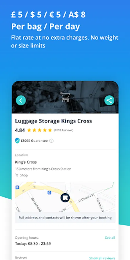With Radical Storage, you can now make the most of your holidays or business trips without worrying about your luggage. Simply choose the luggage storage location that meets your needs, book it in less than no time and feel free again! We designed this convenient application with your needs in mind!