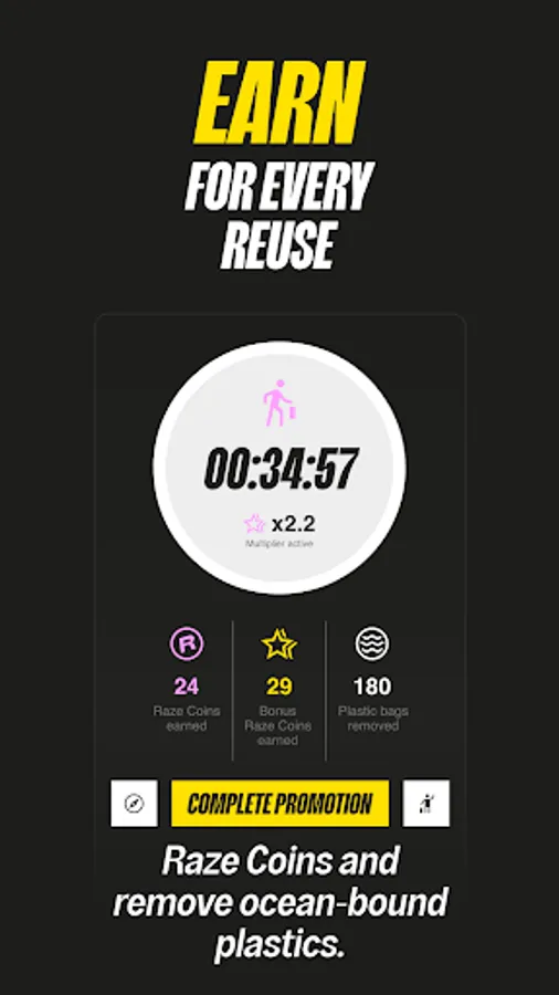 All you have to do is download the app and start carrying your free Raze bag. Every time you reuse the bag, you’ll earn coins which you can spend with Good brands via the in app marketplace. You’ll also be contributing towards ocean plastic clean up for every minute you log.