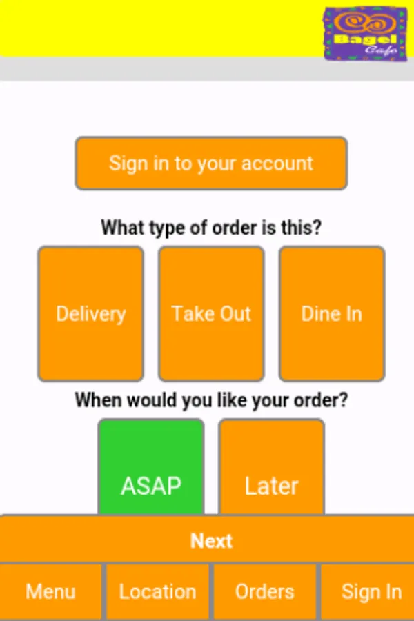 To place an order, first enter the order type, and let us know if you'd like to order now, ASAP, or put in an order for a later time. Then click next.