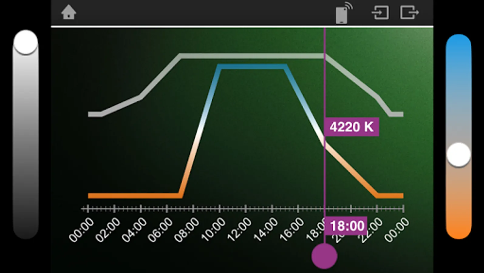 With this app you can quickly and easily program via the smartphone circadian light scenes with corresponding color gradients and the intensity of light.