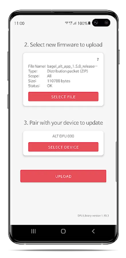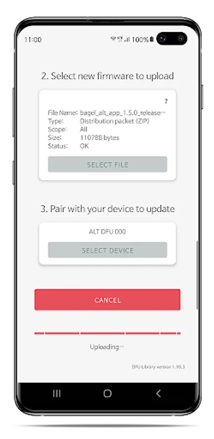 Bagel Labs DFU is an easy-to-use mobile app that allows you to upload new firmware into ALT Smart Tape Measure (BAGEL-003).
