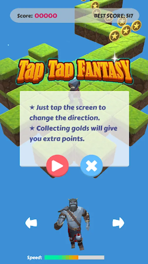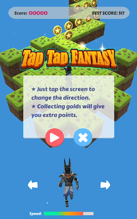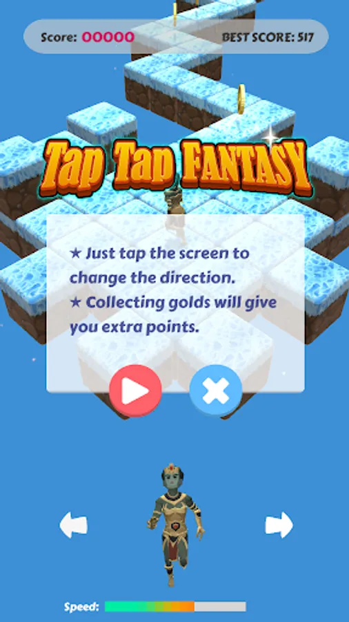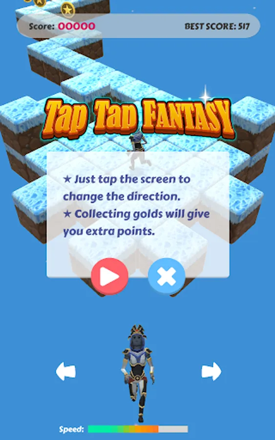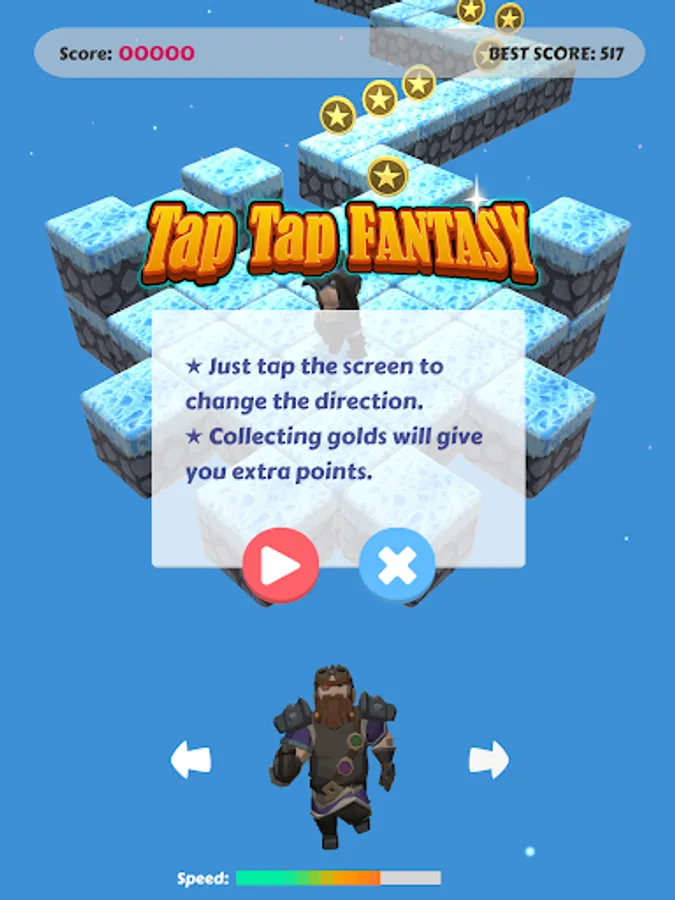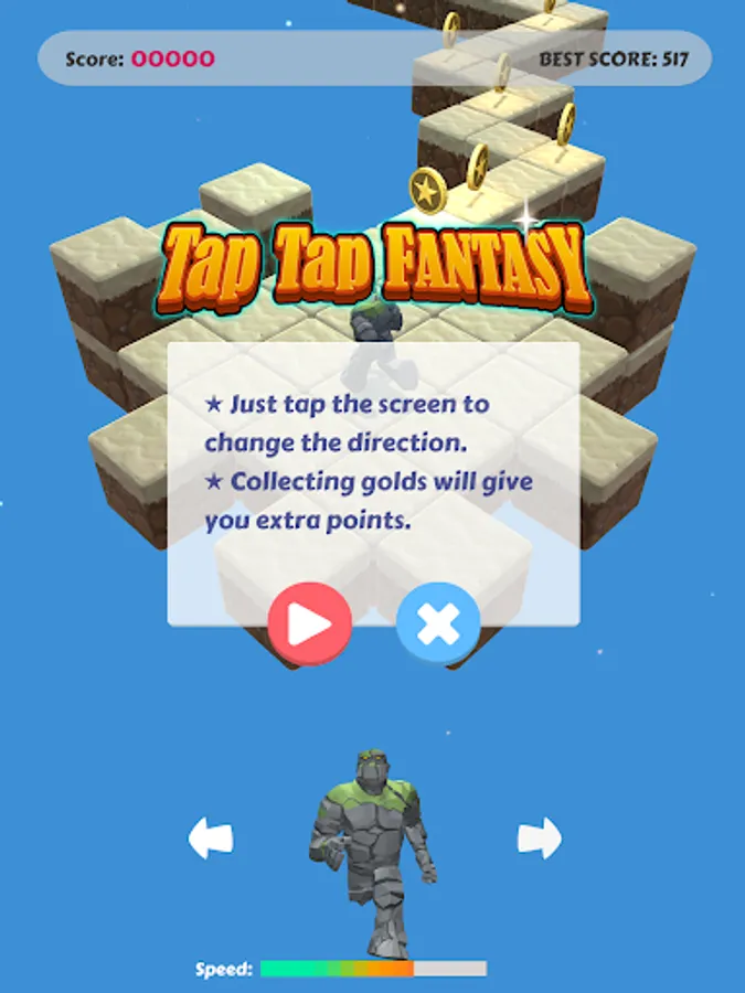 Tap Tap Fantasy is a very fun casual game.You need to control a mythical character on a zigzag road. Touch the screen to control the direction of the character. If the you make a mistake, the character will fall. Try to pick up more coins along the way to increase your points.