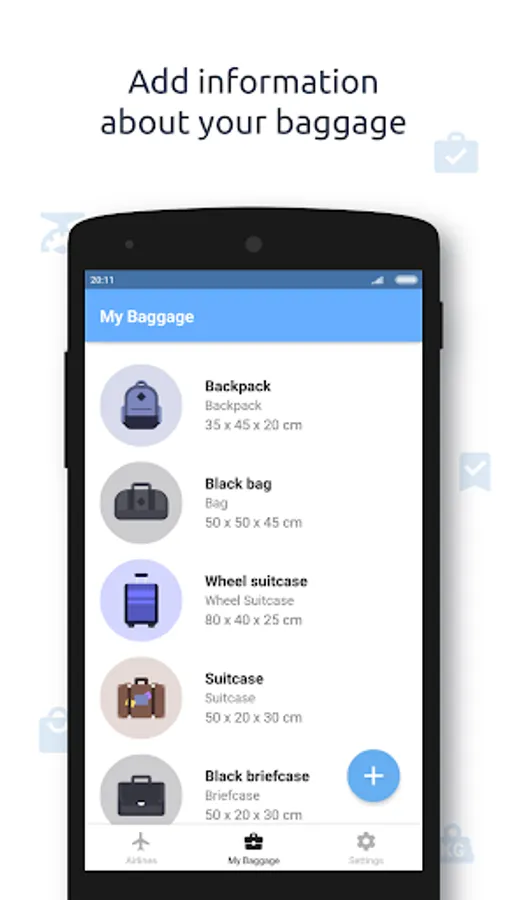We love speaking to our users and hearing what you need to deliver a superior product to your device. If you need the airline currently absent in the application, please drop us email with desired airline name on baggify.app@gmail.com