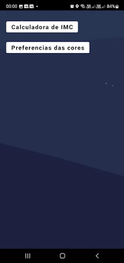 This app is for testing. I'm entering the area of mobile programming and I created this application to test my knowledge, it contains two applications, one to measure the imc and the other to change the colors on the app screen