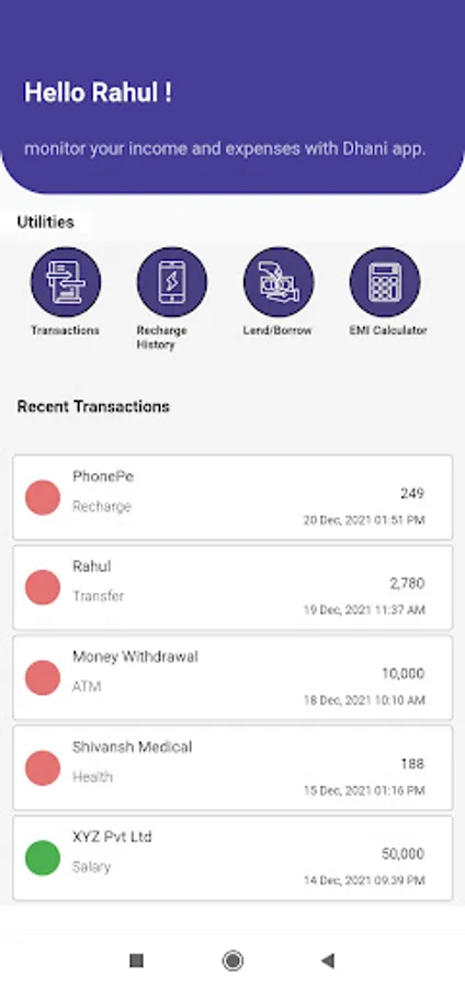 goDhani is best money saving and daily expense tracking app, go Dhani is one stop solution for all your finance related needs, be it your daily money management or managing your private loans or debts with friends or family, or tracking your all mobile recharge history (Jio, Idea, Vodafone, Airtel sim), and check offers related to personal, home, gold loan, and You can also apply for credit cards.