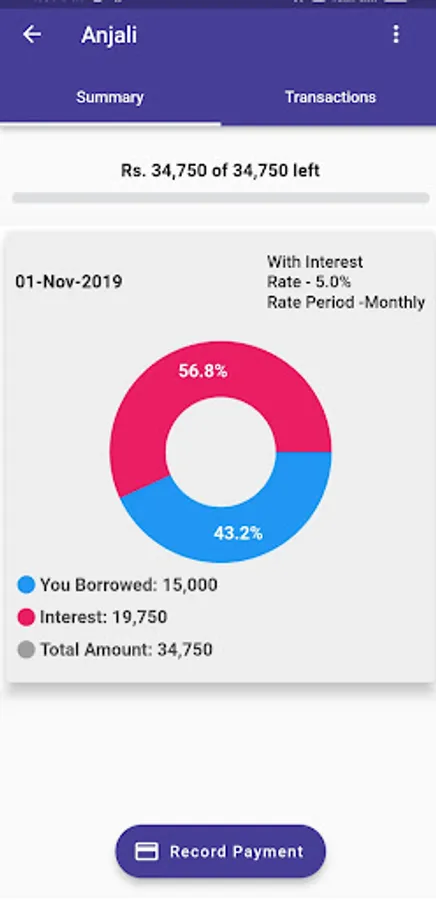 ✅ You can track all payments done for particular private loan or debt. And can also visualize the interest and principle amount in graph.