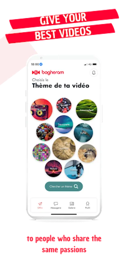 Bagheram is an app that lets you send a video to someone you share a passion with. Each day, choose one of your surprising videos to send to another Bagheramer in the world. With only one goal: to make someone smile!