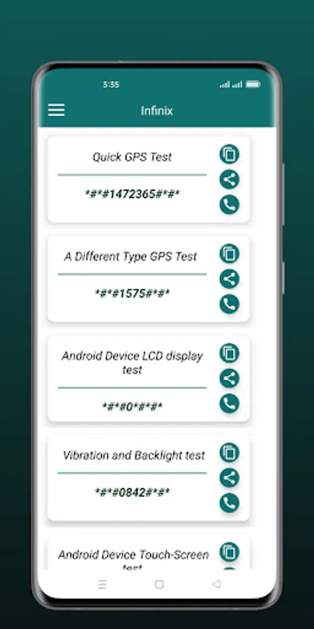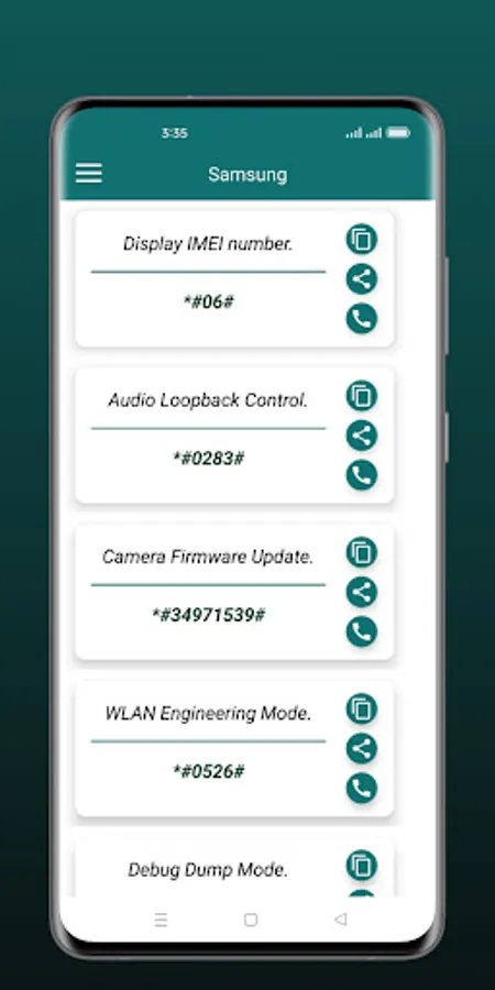In the android secret code application, users can get different secret codes for android phones and Networks codes as well. The Mobile secret codes application provides you filed mode, IMEI No and Screen Information, etc. Users can share secret codes with friends and relatives using all mobile secret code app. Now You can Discover the secret world of your , Android and other OS base mobile! devices. Some code of them may not work on specific devices, but you can still try them because their manufacturer does not allow them. When those codes are typed manually from the phone dialer or you can copy this code with long press on code and paste it on clipboard and samsung secret codes and tricks There is also Functionality in the application to share it with Facebook, Twitter, WhatsApp and other many more Social Apps.