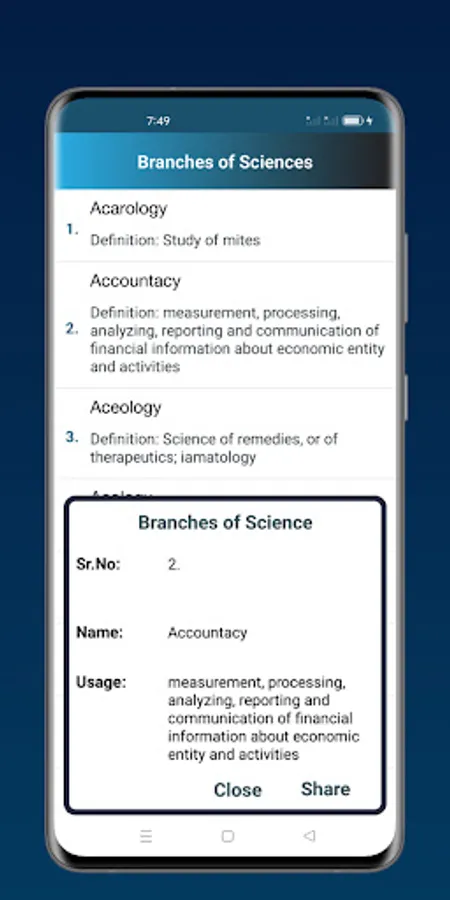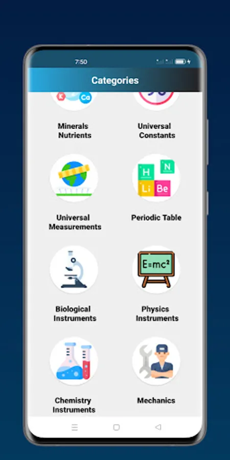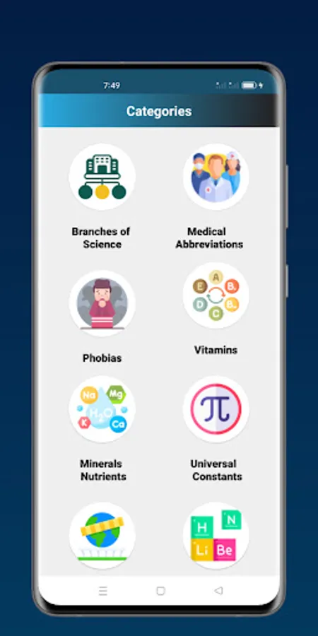 Branches of Science: Delve into the various branches of science, including physics, chemistry, biology, astronomy, geology, and more. Discover how each branch contributes to our understanding of the world. Medical Abbreviations: Decode complex medical jargon with ease! Access an extensive database of medical abbreviations used in the healthcare industry, making it a valuable tool for students and professionals alike. Phobias: Uncover the mysteries of human psychology and learn about a wide range of phobias, their causes, and potential treatments. Fascinating insights into the human mind await you! Vitamins and Minerals: Stay informed about essential vitamins and minerals that are crucial for maintaining a healthy lifestyle. Understand their roles in the body and their food sources. Universal Constants: Unravel the fundamental constants that underpin the laws of the universe. From the speed of light to Planck's constant, gain insights into the building blocks of reality. Universal Measurements: Easily convert between different units of measurement used worldwide. Whether it's distance, weight, temperature, or any other metric, this feature has got you covered. Periodic Table: Discover the elements that make up everything around us. Navigate an interactive and user-friendly periodic table to learn about each element's properties and uses. Biological Instruments: Explore a comprehensive collection of instruments used in biological research and medical laboratories. Understand their functions and significance in scientific investigations. Physics Instruments: Gain an in-depth understanding of instruments used in physics experiments and research. From telescopes to spectrometers, this section covers it all. Chemistry Instruments: Dive into the world of chemical analysis with a detailed overview of instruments used in chemistry labs. Learn how scientists study and manipulate matter at the molecular level. Mechanics: Master the principles of mechanics with this in-depth section. Learn about Newton's laws, motion, forces, and the dynamics that govern our physical world.