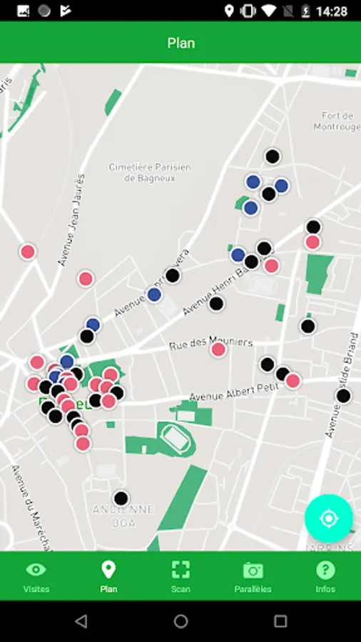 All the points of interest are geolocated: they are indicated on a map by colored pellets. The image recognition feature makes it easy to access information about certain sites to discover by simply scanning the images.