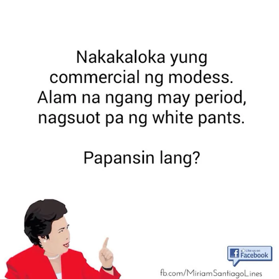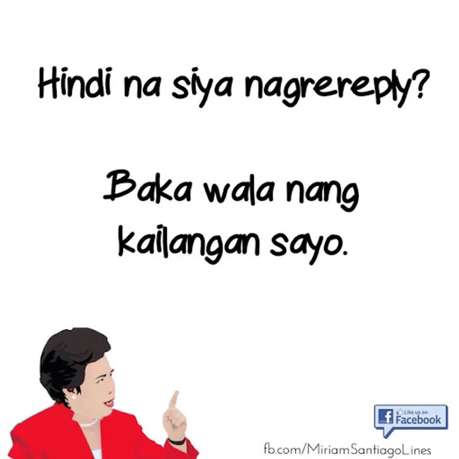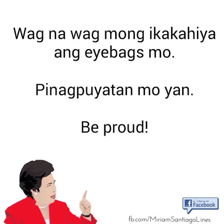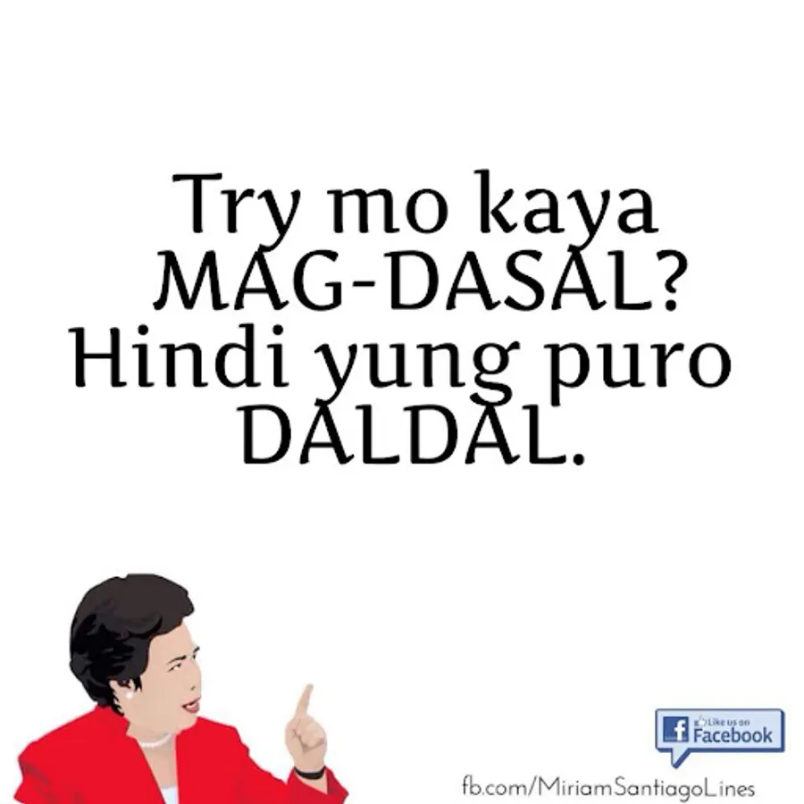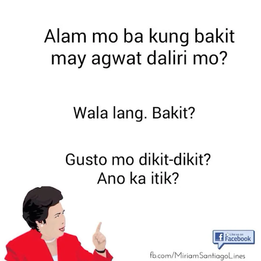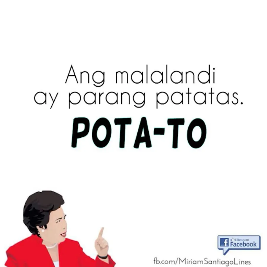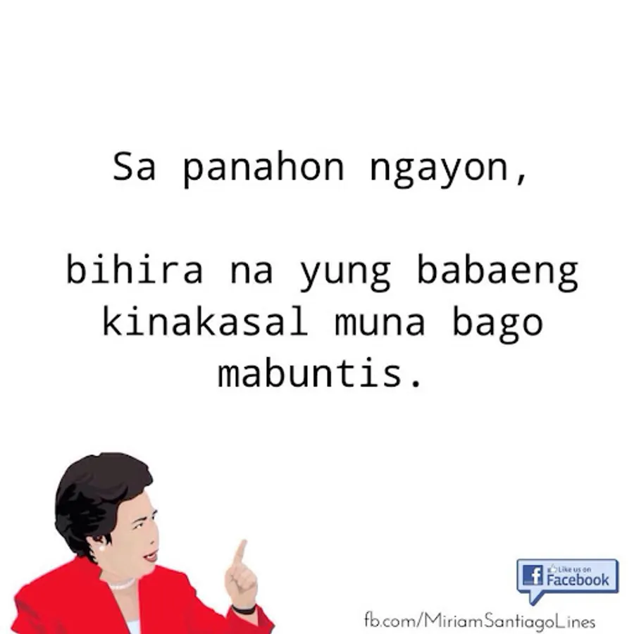Here's a collection of Sen. Miriam Santiago pick up lines you can share with your friends, enemies, neighbors and loved ones.