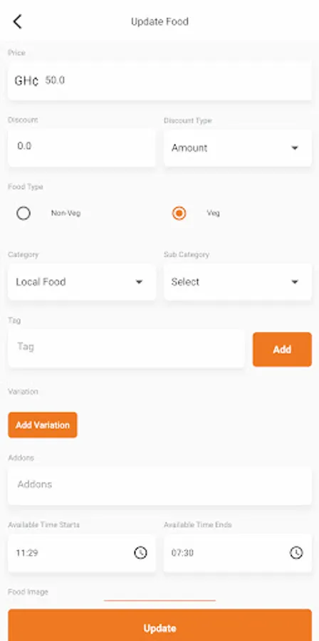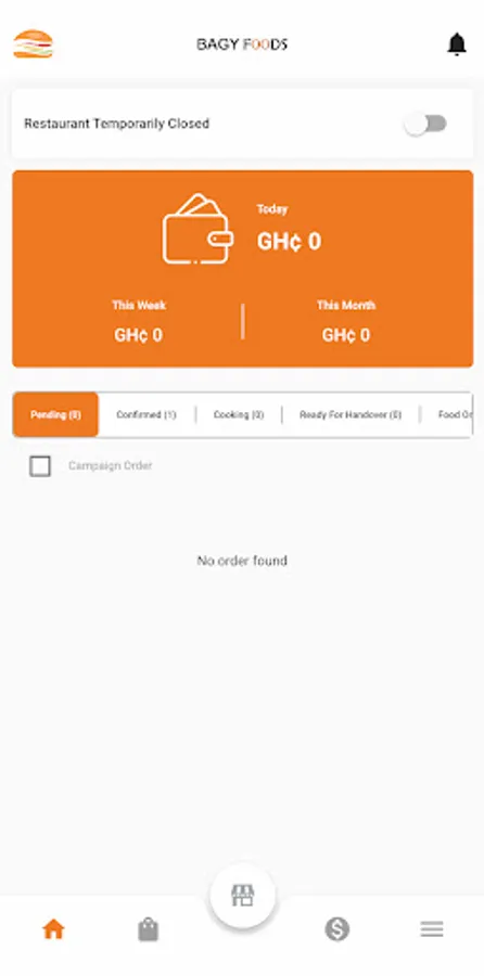 App for restaurant owners for managing food categories and orders on the Bagyfoods website