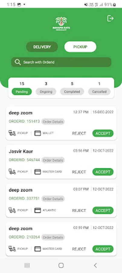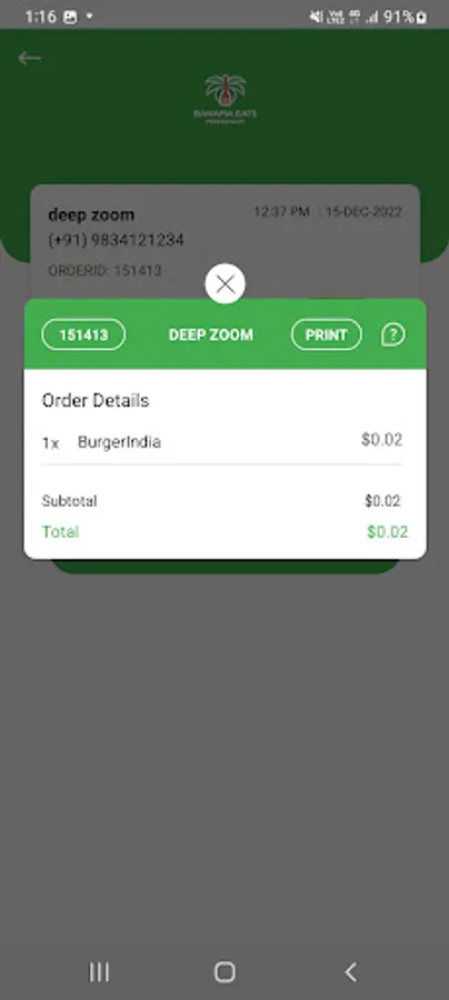 With the Bahama Eats Merchant Platform, our merchants/restaurants are able to accept/reject orders, estimated time of order preparation,completed the order ,view driver details for delivery order and merchant can print the order detail receipt, so that merchants/restaurants provide better service.