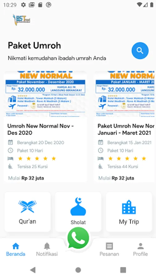 Application to help the worship of BSTravel Umrah pilgrims in carrying out worship in the holy land of Mecca and Medina. The application can also be used for daily worship purposes in which there is a Digital Koran feature, prayer schedules, and prayers.