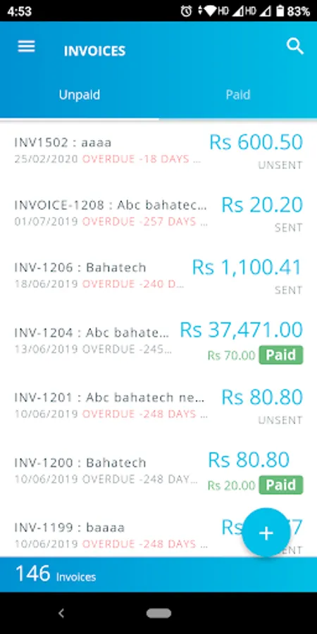 • Offline invoice feature that does loads with display of due date when an invoice is due for payment.