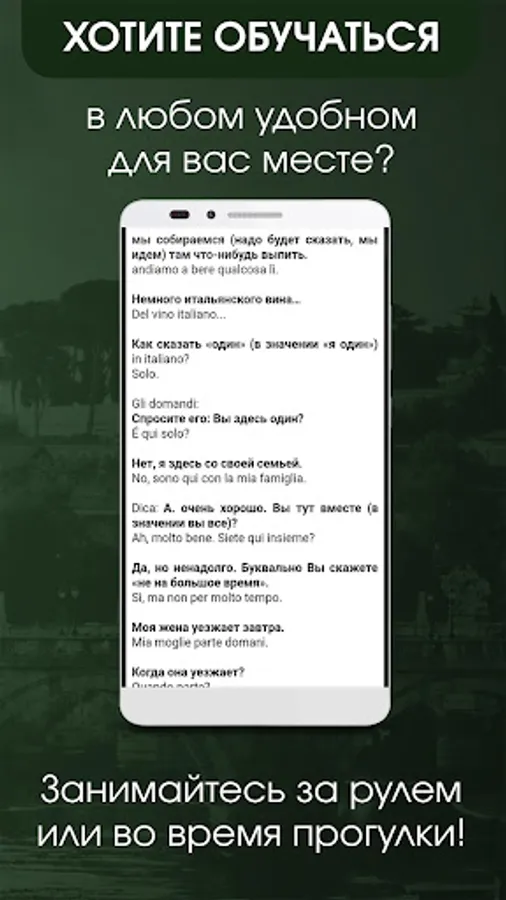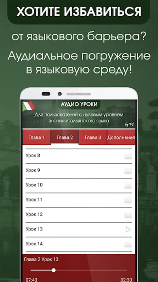 After studying this course, giving only half an hour per day you can confidently communicate with native speakers of the Italian language, even if your Italian level was zero.