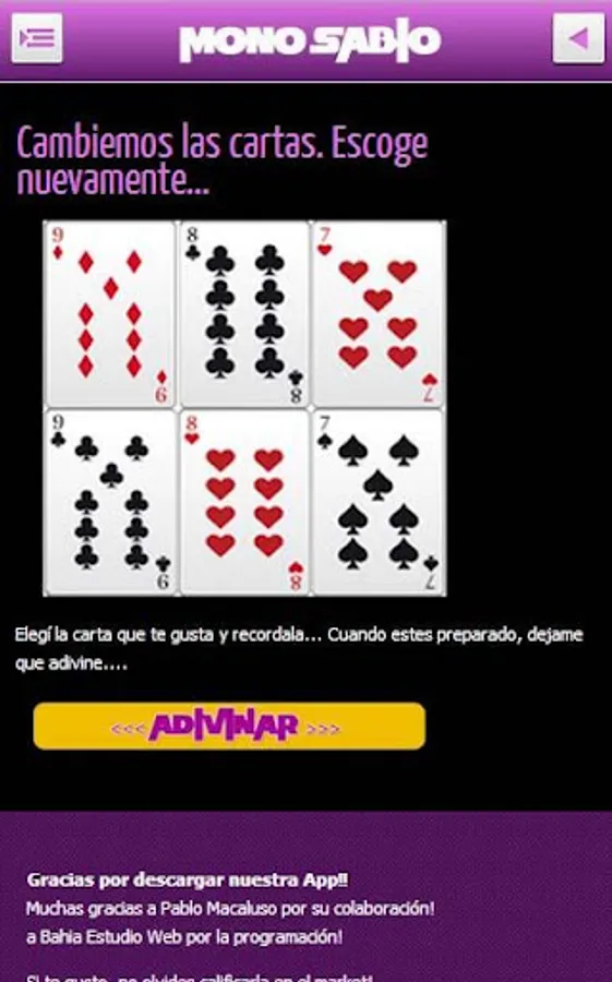 Wise Monkey is a magic trick, where I'll guess the card you choose. Also find out your date of birth and a random number you choose.
