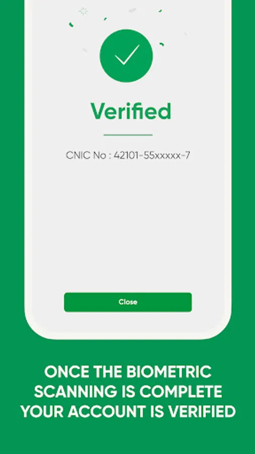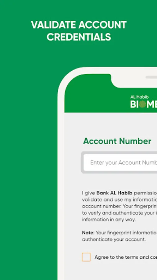 Enter the Account Number and use the camera in your mobile device to scan your fingerprints and submit them for verification. The biometric verification process will be completed in a few minutes after which you can successfully continue operating your AL Habib Digital Account.