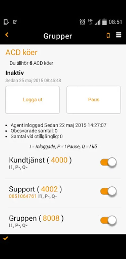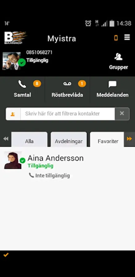 Here you manage your telephone connection in the company switchboard from Bahnhof. You can easily change the status in the event of a meeting, vacation, etc., and forward incoming calls wherever you want. You can send e-mails, log in and out of groups, change display numbers, overview queues and see the status of your colleagues. Last but not least, you can of course call!