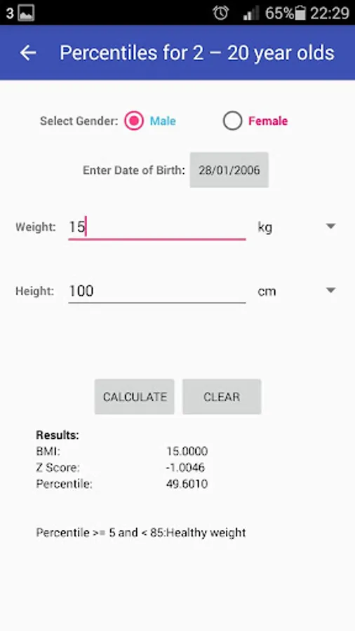 BMI Percentiles Calculator Screenshots