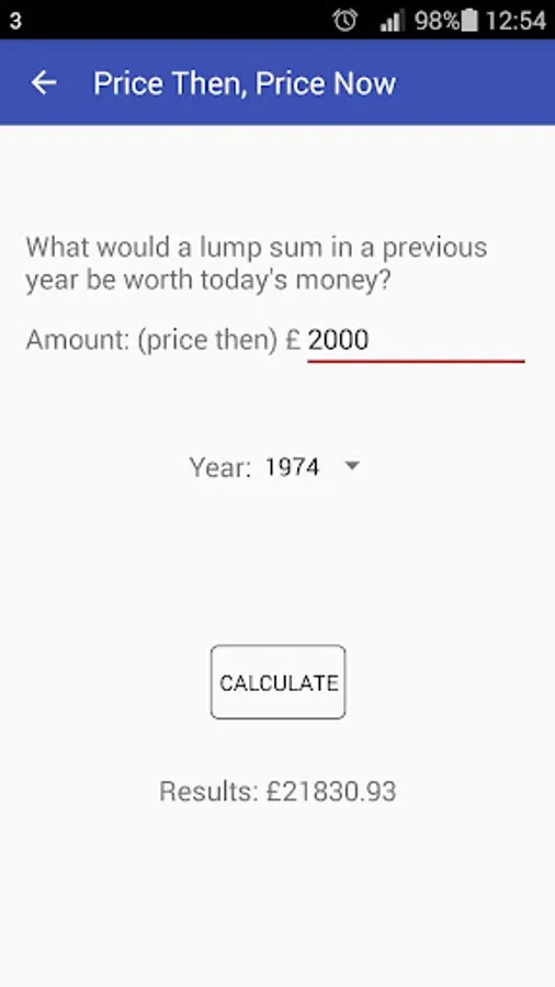 Inflation Calculator lets you calculate the value of money for each year since 1900. For example, did you know that £10 in 1974 has the same buying power as £108.07 in 2015?