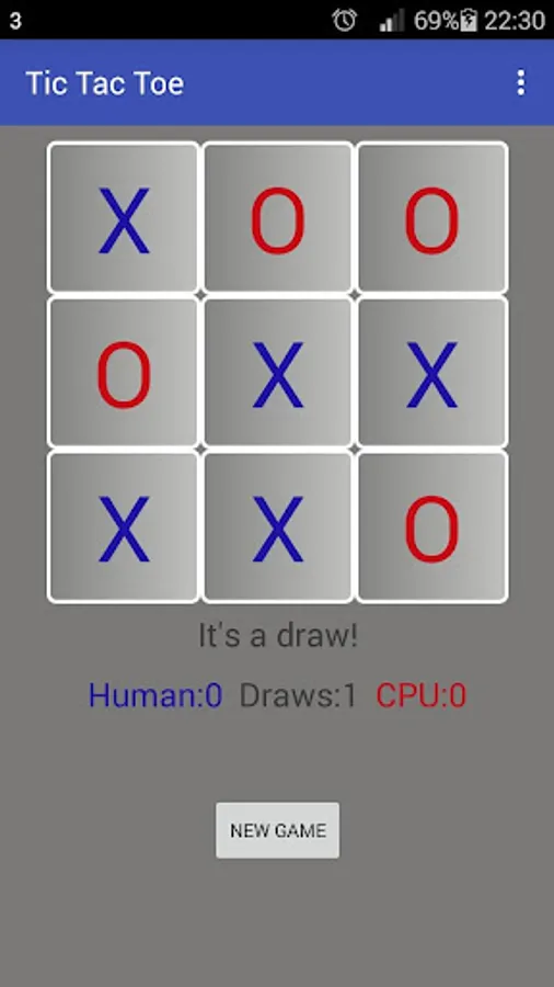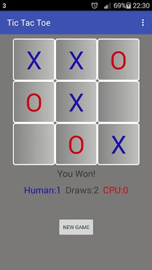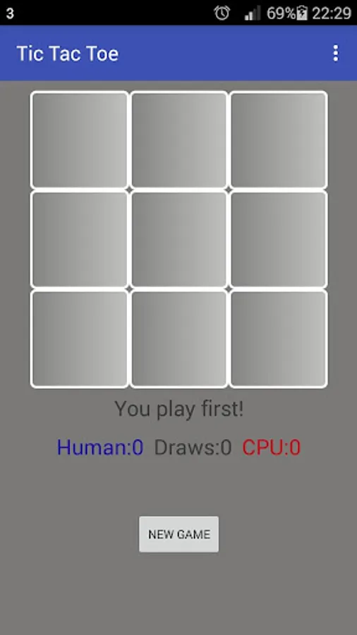 Tic-tac-toe (also known as Noughts and crosses or Xs and Os) app for you against your smart phone, X and O, who take turns marking the spaces in a 3×3 grid. The player who succeeds in placing three of their marks in a horizontal, vertical, or diagonal row wins the game.
