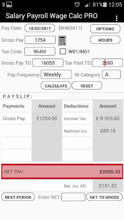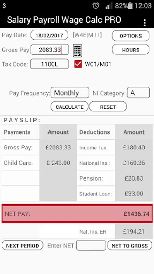 Functions: Net to Gross, Employer NI as well as with the free version: