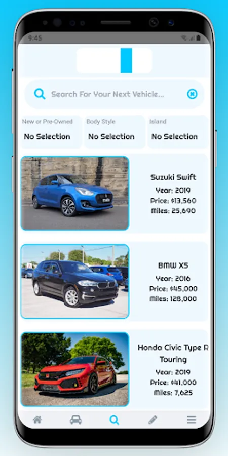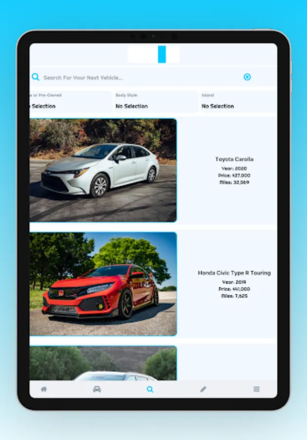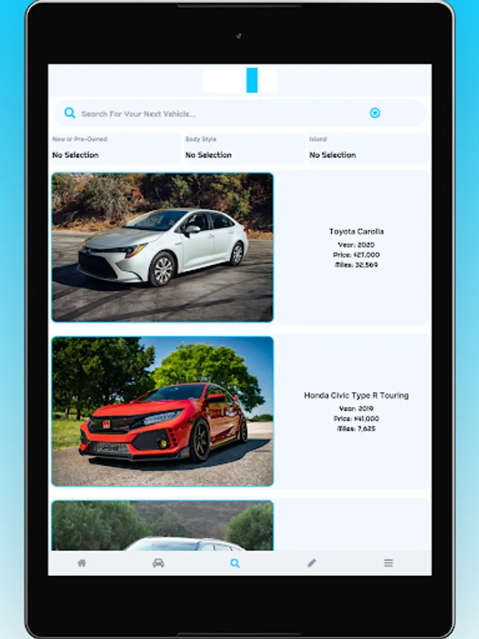 1. Search through all of our listings on the bahvee app to find the vehicle that's perfect for you