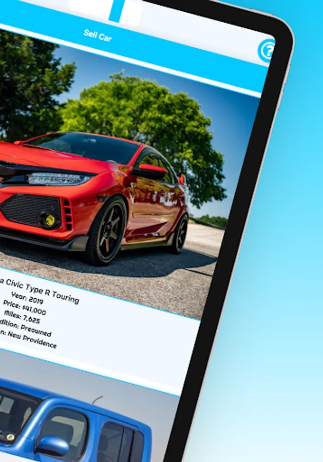 Selling a vehicle using the bahvee app in The Bahamas is also very easy, you simply upload pictures of the vehicle, its make, model, year and other information. And that's it! Your vehicle is listed for sale in The Bahamas, and anyone who sees it on The bahvee app can send you their contact information to purchase it.