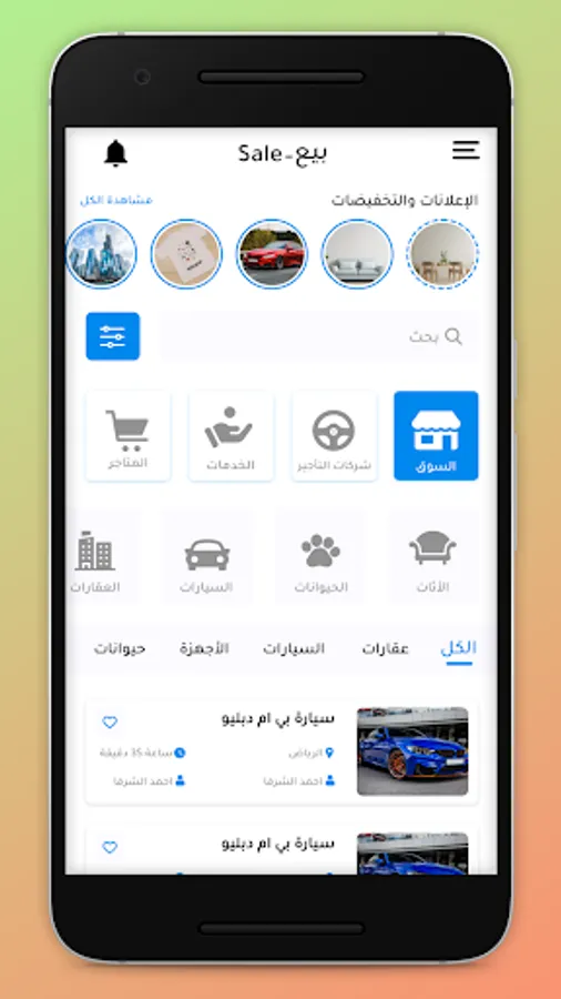 Now,, Sale application is an application that provides you with an advertisement for all kinds of products that you may be looking for in public markets, car markets and exhibitions, and even provides you with what you may look for in all of the following areas: