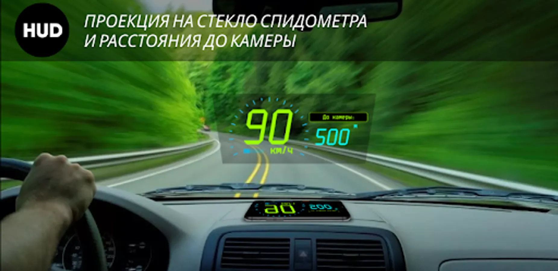 HUD (Head-up Display) - projection onto the windshield of the speedometer and the distance to the cameras, it is very convenient to use in the evening and at night.