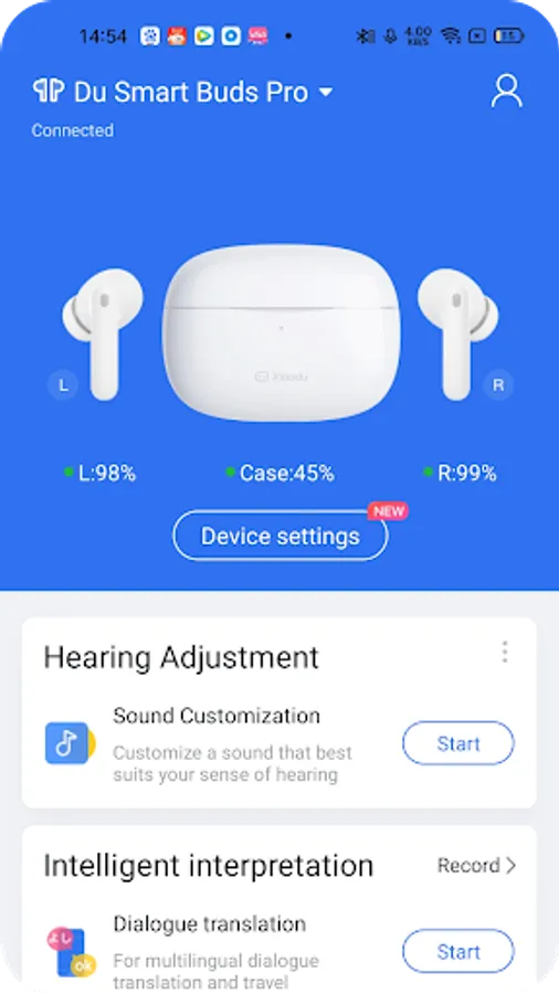Xiaodu app is a supporting app for the Du smart buds and Du Smart Buds Pro.Users can check the power of the headset, change the touch , use smart translation,use voice notes and other functions on the app.