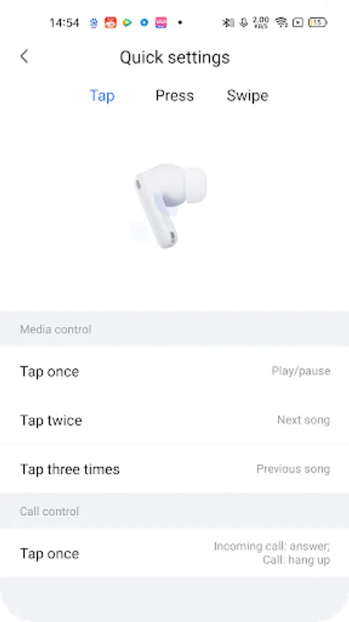 2. Change touch: you can customize the function of the touch area of the Du smart buds and Du Smart Buds Pro.
