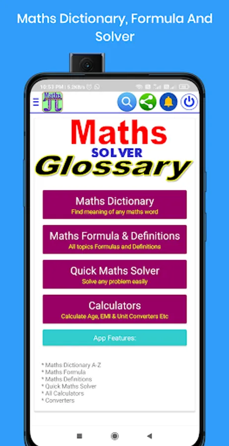 Maths Dictionary, Formula And Quick Solver App Features: