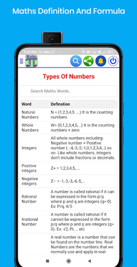 Maths Formula And Definitions included in the App: