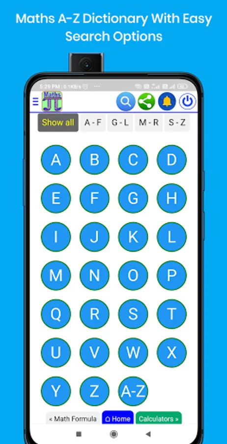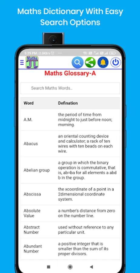 * Maths Dictionary with A-Z Easy Search Options.