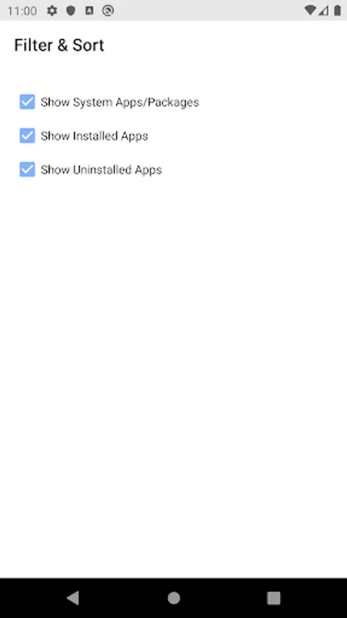 * Filtering allows you to filter by installed, previously installed, uninstalled, and system apps.