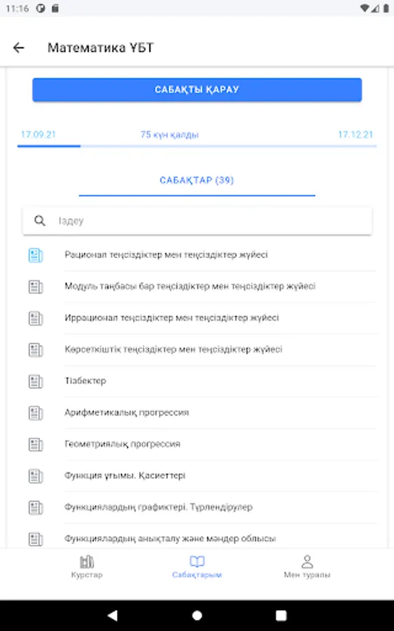This platform contains preparation courses and tasks for UNT, KTA and Qualtest exams.
